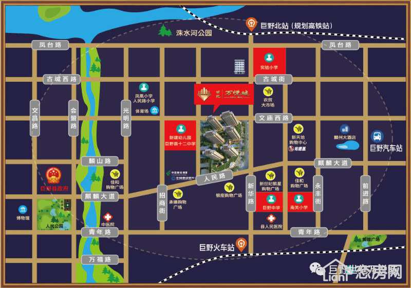 项目位于新华路与人民路路交汇处,东有汽车站,南有火车站,北有高铁站,门前有多路公交车经停,让您尽享无忧的交通配套。